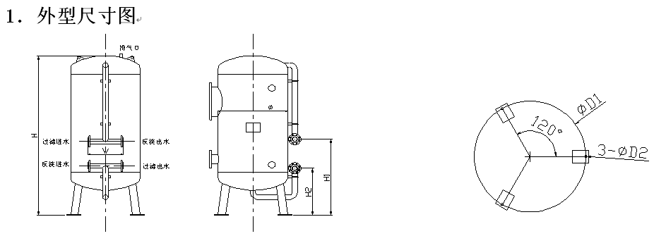 JDSF-600 | Φ600×2250 | ~3 | DN50 | DN50 | DN15 | 600 |